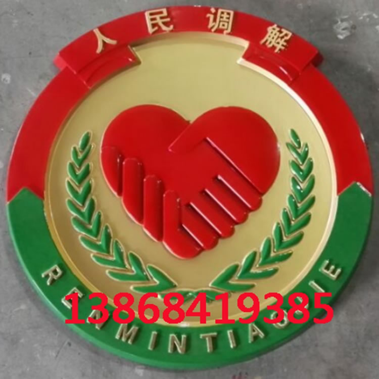 | 安裝方式 | 調解徽-小徽章背面都配有穿掛耳孔,釘子釘在墻上,再用穿鐵絲鋼絲,適合安裝在辦公室/會議室會場等。大徽后面為膨脹螺絲孔,安裝需要定做鐵架,鐵架固定墻面上后,再將徽章固定在鐵架上。玻璃幕墻也是需要鐵架方式安裝。 |